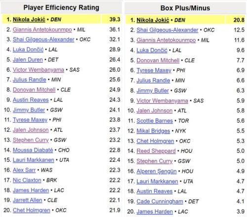 如此炸裂的表現(xiàn),約基奇反超字母哥、亞歷山大,重奪MVP榜第一也就不意外了。